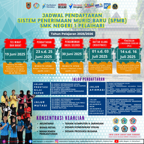 30 Jun 2025Hasil Seleksi Sistem Penerimaan Murid Baru (SPMB) SMK Negeri 1 Pelaihari Tahun Pelajaran 2025/2026 sesuai hasil keputusan rapat Panitia SPMB SMK Neg[...]
